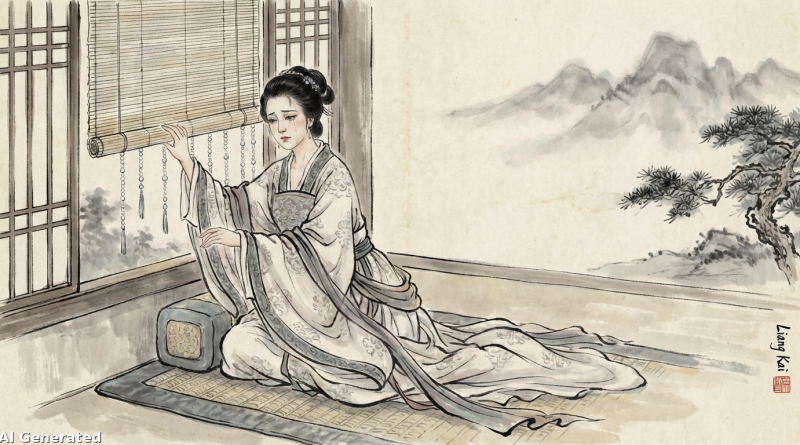 詩中描寫了一位深宮女子的幽怨。「美人捲珠簾」,寫她的動作,捲起簾子或許是在期待著誰。「深坐顰蛾眉」,寫她的神態,長久坐著,眉頭深鎖,顯得心事重重。「但見淚痕濕,不知心恨誰」,最後只看見她臉上的淚痕,卻不知道她心裡到底在怨恨誰(或是思念誰)。含蓄地表達了她無盡的哀愁與孤寂。